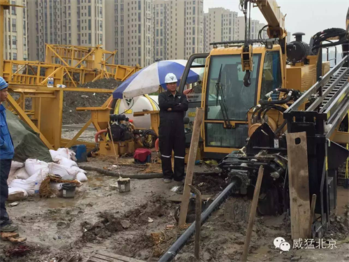 上海嘉定 300mm 的管徑,穿越495米,還要跨越20米深的河流,周?chē)蔫F路可能會(huì)對(duì)導(dǎo)向造成干擾。 一個(gè)月的工期,威猛機(jī)器僅用5天時(shí)間,順利完工! 工程的圓滿(mǎn)結(jié)束,離不開(kāi)客戶(hù)操作手的技術(shù), 也離不開(kāi)威猛服務(wù)總工的大力支持,威猛與客戶(hù)一起成長(zhǎng),走的更遠(yuǎn)!