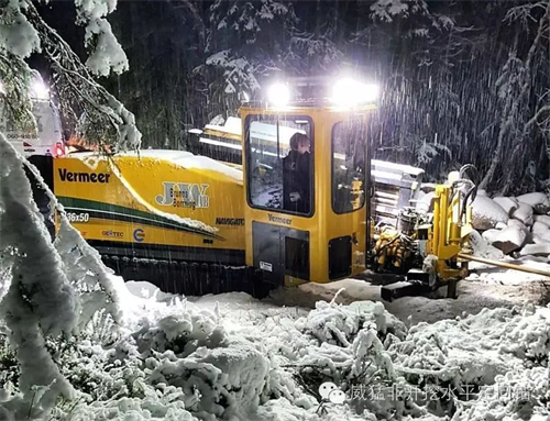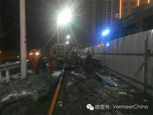 在東北零下二十來度的氣溫中,威猛水平導(dǎo)向鉆機(jī)V750完成了一段長度達(dá)640m的巖石層穿越工程。威猛客戶遼寧山盟承接了這個燃?xì)庵袎汗艿揽趶?00mm PE管工程。市區(qū)施工場地狹小(綠地山城小區(qū)至小堡貨站倉庫區(qū)),大設(shè)備無法入場。入鉆點為卵石層,出鉆點為卵石回填層,主要穿越土層為巖石。V750充分發(fā)揮了緊湊身型,機(jī)載大流量泥漿泵的優(yōu)勢,大大降低了場地要求和成本,不懼嚴(yán)寒,順利完成施工。