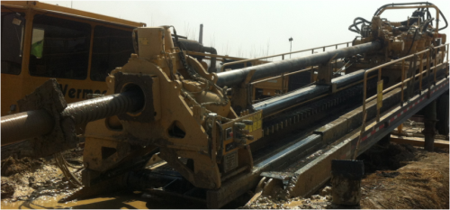 天津世紀(jì)東大使用威猛型號(hào)D1320水平導(dǎo)向鉆機(jī),于2012年4月10日為天津市燃?xì)饧瘓F(tuán)在寶坻至靜海段完成了一項(xiàng)1645米長(zhǎng)、管徑為1016毫米的天燃?xì)夤芫€安裝工程。此次穿越工程列入天津市“十二五”重大建設(shè)項(xiàng)目,為寶坻、靜海、大港天然氣輸氣管網(wǎng)工程的控制性節(jié)點(diǎn)工程,需要利用水平定向鉆機(jī)(白廟楊建段)完成穿越項(xiàng)目。