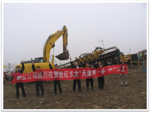 工程中采用的威猛研發(fā)的7 5/8英寸鉆桿,是整個(gè)水平定向鉆機(jī)市場(chǎng)中的鉆桿。此項(xiàng)工程的新聞和記者招待會(huì)在天津電視臺(tái)四月十日晚間不同的四個(gè)時(shí)間段播出。