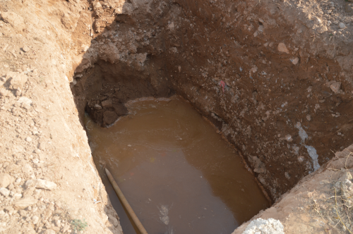 從低處往高處打?qū)?鉆機(jī)扭矩控制在1000到1500Psi,經(jīng)過5個多小時,鉆頭從出土口噴涌而出。然后進(jìn)行擴(kuò)孔,從30mm 擴(kuò)大到600mm,扭矩控制在2000-3000Psi,成功回拖!