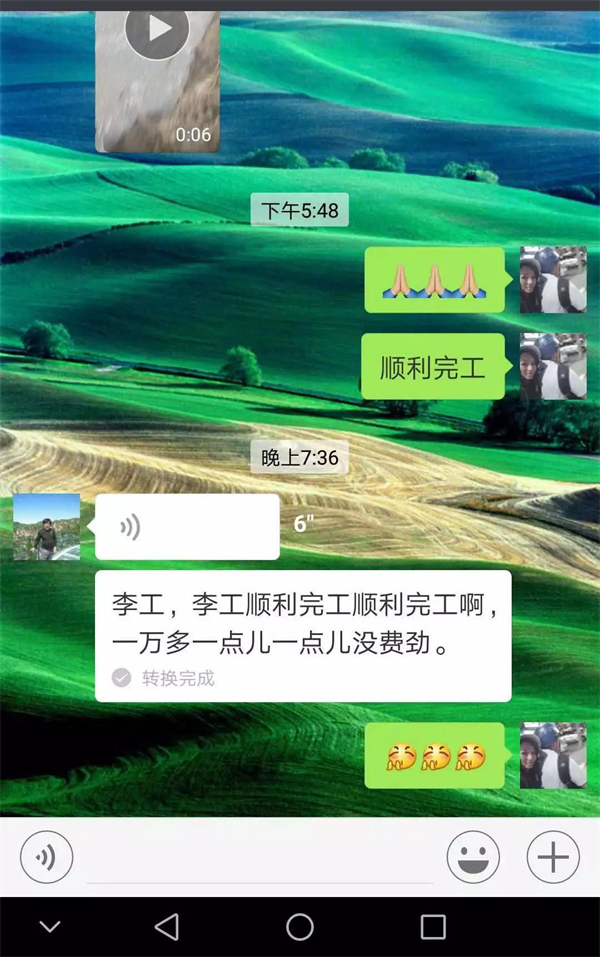 我現(xiàn)場離開時5:00左右, 客戶連好回擴器準備回拖, 車還沒開到家, 客戶已經(jīng)在我們的服務群里告知 李工李工,已經(jīng)順利完成回拖, 7:36,也就是使用了兩個半小時, 完成了432米的610mm 管道的回拖,客戶還提到:一點兒沒費事兒!